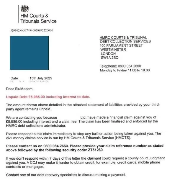 In recent weeks, there has been a sharp rise in reports of fraudulent debt collection letters claiming to come from HM Courts & Tribunals Service (HMCTS), the government agency that manages courts and tribunals in England and Wales. Alongside these, people are also reporting cold calls that claim to “help with debts.”